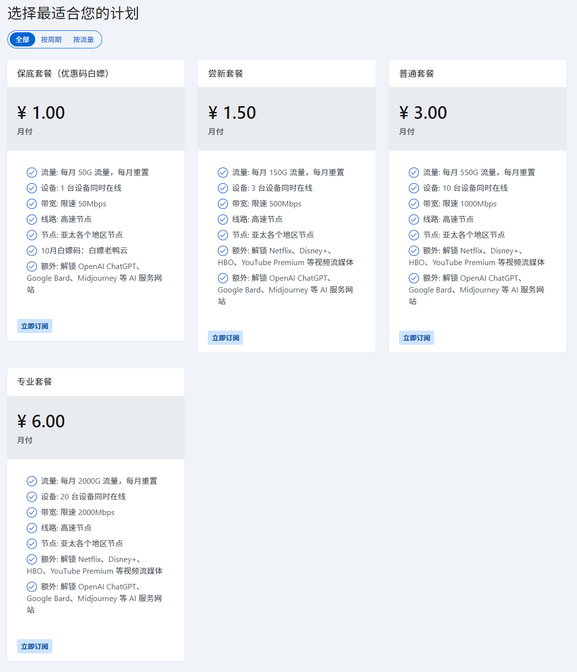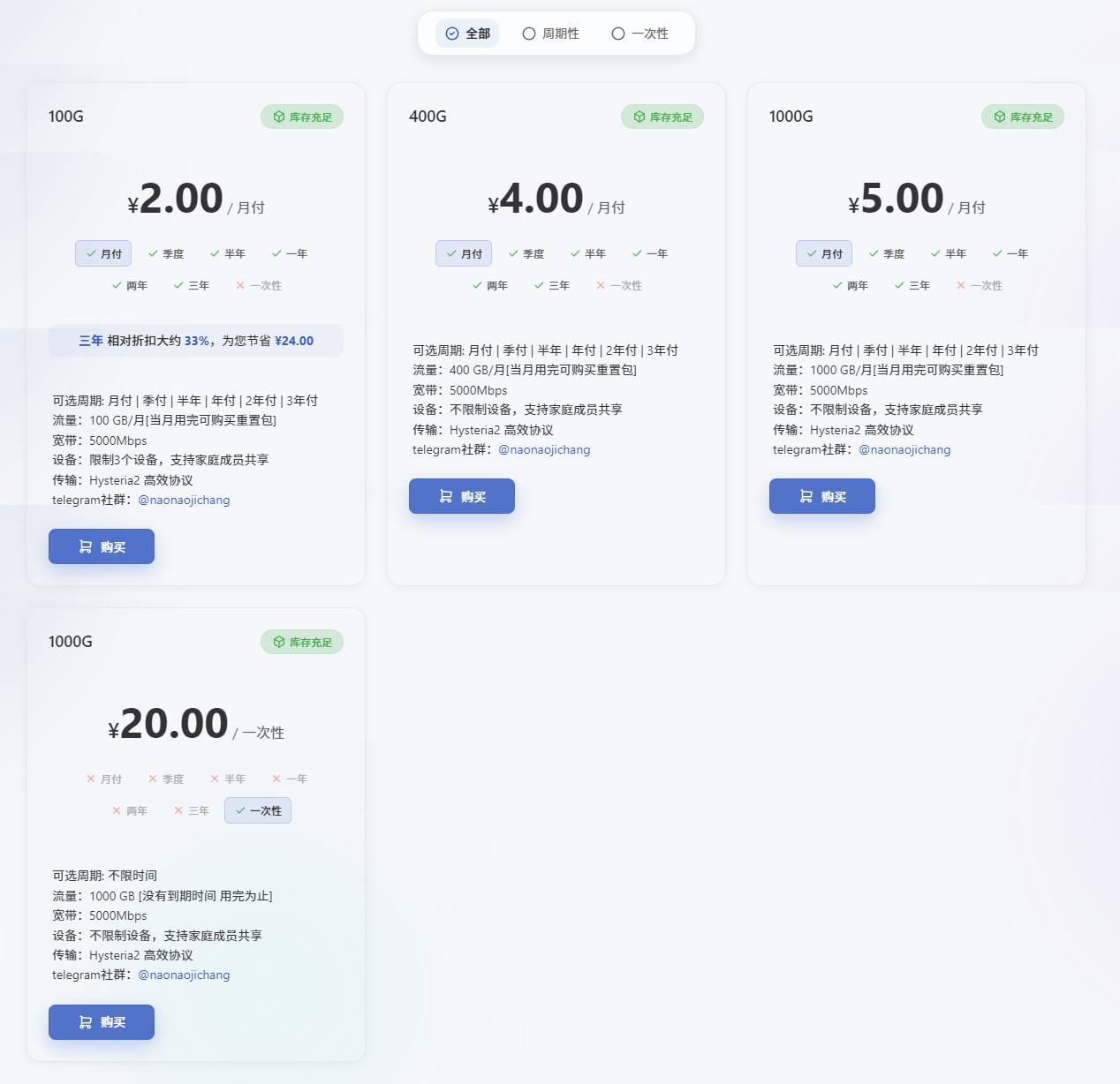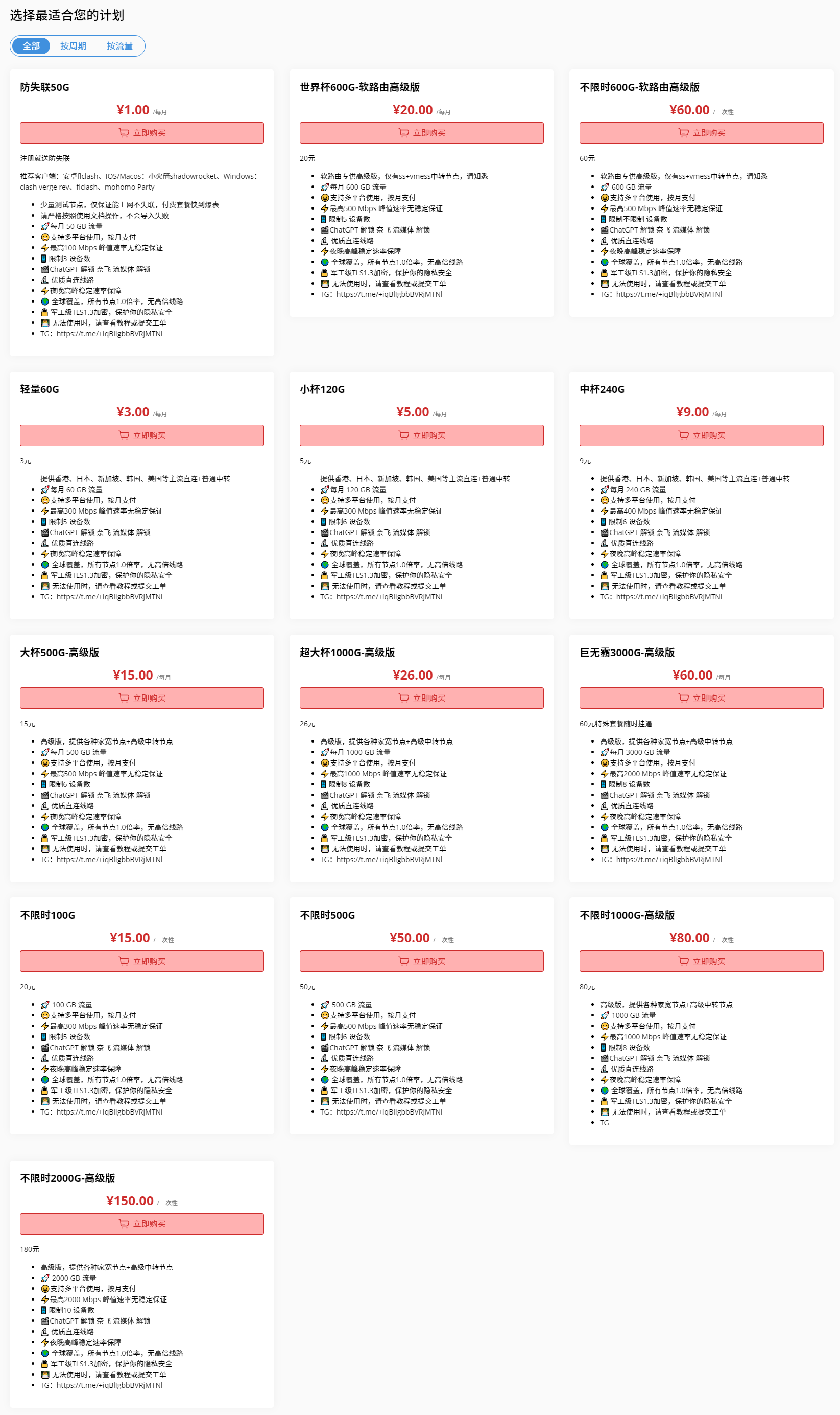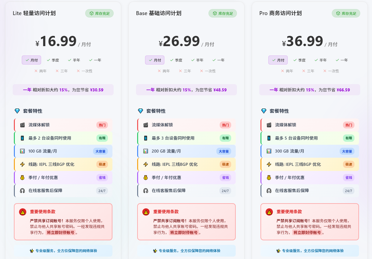 - 建议月付购买服务,以降低跑路风险。