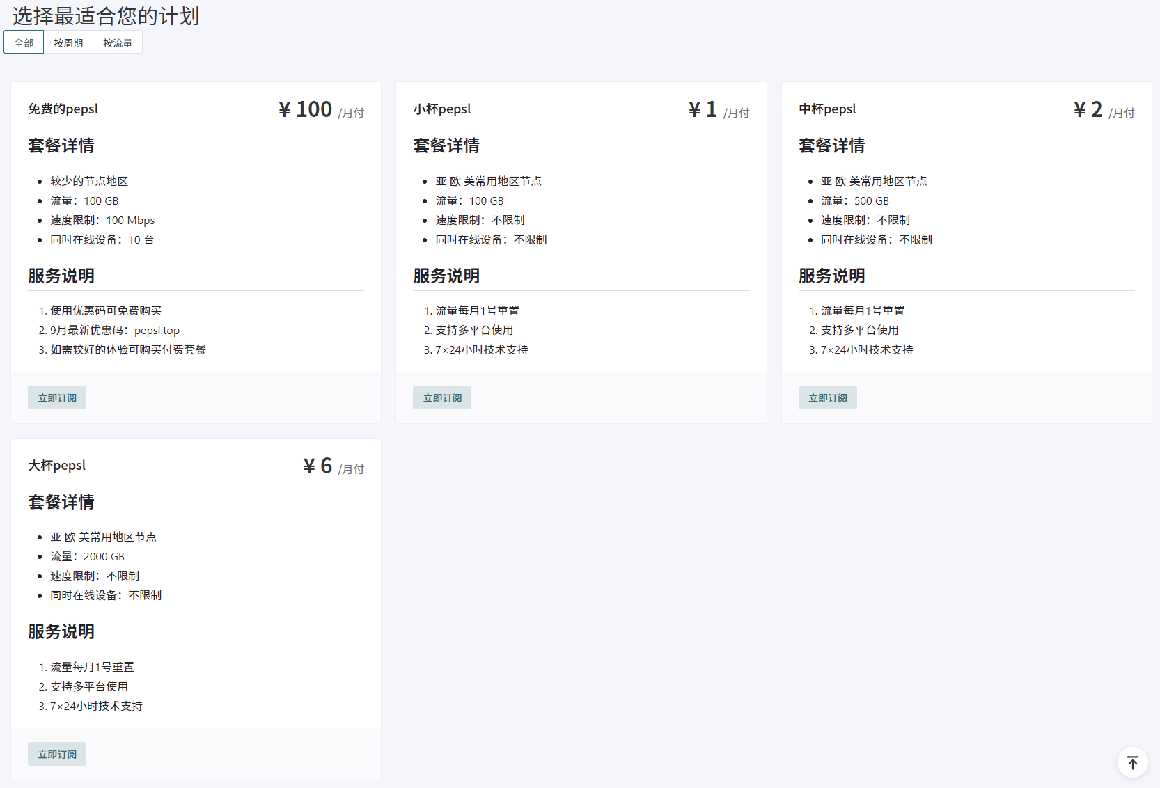 0元购买30天100G流量免费的pepsl