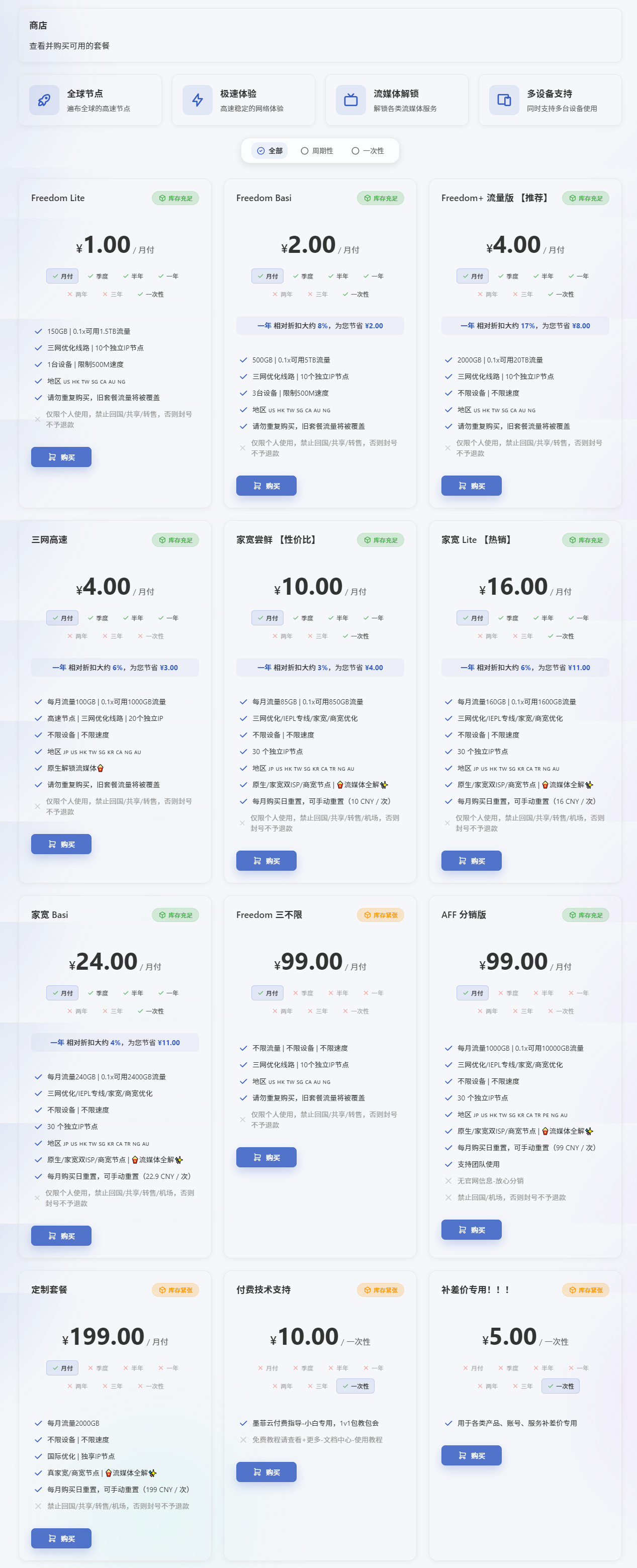 请注意,随着监管政策的加强,免费且稳定的代理服务变得越来越稀缺。目前,大多数服务都需要一定的付费才能保证稳定性。